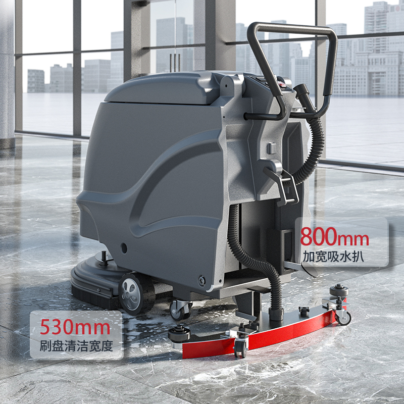 揚子洗地機X2大續航一次充電可用3-4小時,續航持久效率翻倍,采用知名品牌原廠定制電池,更快,更久,更強的電池性能。800mm吸水扒,530mm清掃寬度,達3000㎡/h清潔效率。?
